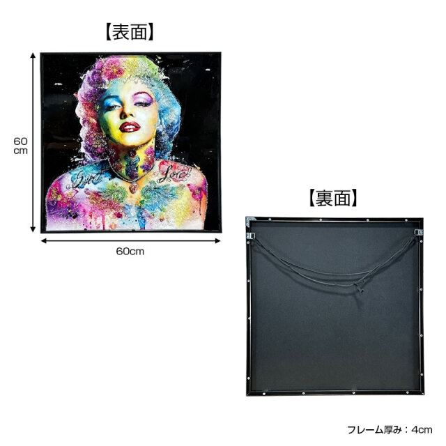 【商品について】 水晶パネル KH977 ■製品寸法 幅60×奥行4×高さ60(cm) ■注意事項 ・ハンドメイドでの貼り付けのため、水晶風パーツの個数・配置に個体差がございます。 ・本商品には重量がございます。壁掛けて取り付け頂く際は必ず、壁の心材がある場所にボルトなどで固定してください。 ・本商品の特性上、輸送中の振動により装飾の一部が取れる場合がございます。予めご了承ください。 【送料について】 ・送料無料 ただし、東北・北海道・沖縄・離島へのお届けにつきましては送料無料対象の場合も追加送料が必要となります。 また、開梱設置サービスをご利用の場合、送料とは別に料金が必要です。ご注文前にお問い合せください。 追加料金が必要な場合、買い物カゴでは再計算されません。料金確定後、こちらからご連絡させていただきます。 【キーワード】 絵 イラスト おしゃれ 高級感 女性 マリリン・モンロー 絵画 北欧 アートポスター インテリア 芸術 雑貨 水晶絵 水晶 60×60 正方形 飾る ラウンジ リビング エントランス ベッドルーム レンガ 壁掛け 床置き 棚置き 寝室 玄関 待合室 廊下