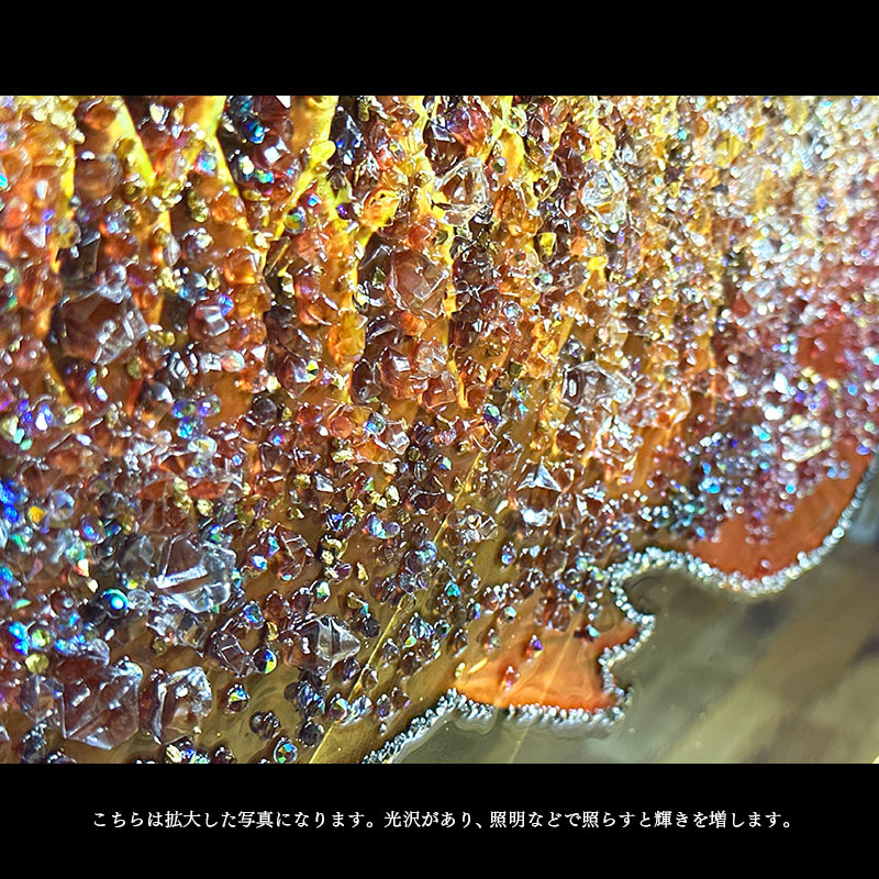 | 注意 | ・ハンドメイドでの貼り付けのため、水晶風パーツの個数・配置に個体差がございます。 ・本商品には重量がございます。壁掛けて取り付け頂く際は必ず、壁の心材がある場所にボルトなどで固定してください。 ・本商品の特性上、輸送中の振動により装飾の一部が取れる場合がございます。予めご了承ください。 |
