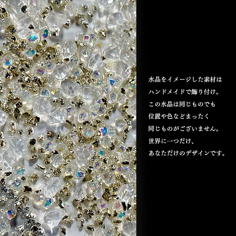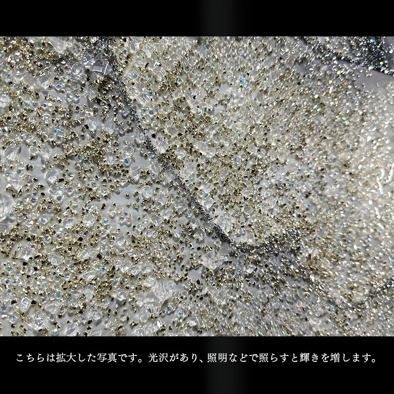 | 注意 | ・ハンドメイドでの貼り付けのため、水晶風パーツの個数・配置に個体差がございます。 ・本商品には重量がございます。壁掛けて取り付け頂く際は必ず、壁の心材がある場所にボルトなどで固定してください。 ・本商品の特性上、輸送中の振動により装飾の一部が取れる場合がございます。予めご了承ください。 |