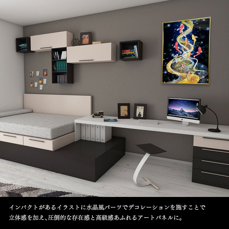 【商品について】 水晶パネル F021230 ■製品寸法 幅60×奥行4×高さ80(cm) ■注意事項 ・ハンドメイドでの貼り付けのため、水晶風パーツの個数・配置に個体差がございます。 ・本商品には重量がございます。壁掛けて取り付け頂く際は必ず、壁の心材がある場所にボルトなどで固定してください。 ・本商品の特性上、輸送中の振動により装飾の一部が取れる場合がございます。予めご了承ください。 【送料について】 ・送料無料 ただし、東北・北海道・沖縄・離島へのお届けにつきましては送料無料対象の場合も追加送料が必要となります。 また、開梱設置サービスをご利用の場合、送料とは別に料金が必要です。ご注文前にお問い合せください。 追加料金が必要な場合、買い物カゴでは再計算されません。料金確定後、こちらからご連絡させていただきます。 【キーワード】 絵 イラスト おしゃれ 高級感 モダン 鯉 コイ こい 錦鯉 金運 出世運 幸運 絵画 北欧 アートポスター インテリア 芸術 雑貨 アート タペストリー 水晶絵 水晶 60×80 80×60 飾る ラウンジ リビング エントランス ベッドルーム 和室 壁掛け 床置き 棚置き 寝室 玄関 待合室 廊下