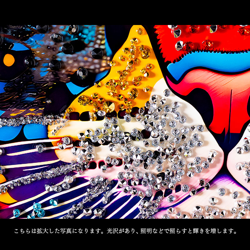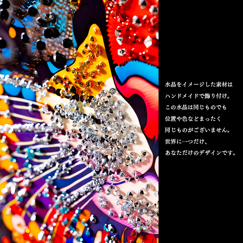 | 注意 | ・ハンドメイドでの貼り付けのため、水晶風パーツの個数・配置に個体差がございます。 ・本商品には重量がございます。壁掛けて取り付け頂く際は必ず、壁の心材がある場所にボルトなどで固定してください。 ・本商品の特性上、輸送中の振動により装飾の一部が取れる場合がございます。予めご了承ください。 |