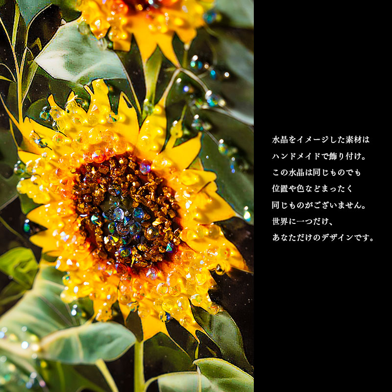 | 特徴 | ・水晶はハンドメイドで飾りつけし、高級感と立体感にこだわりました。 ・太陽光や照明の光を複雑に透過や屈折で光の乱舞を作り出して楽しむことができます。 ・飾る場所の照明の色味によって雰囲気が変わります。 ・上品なブラックカラーのフレームと裏面紐付き。 |