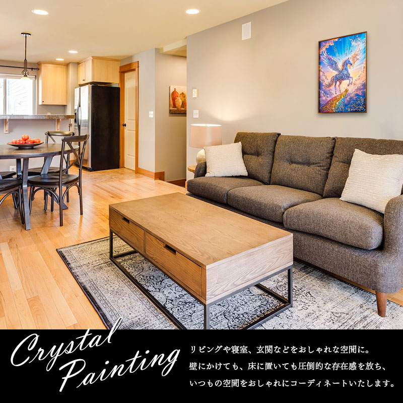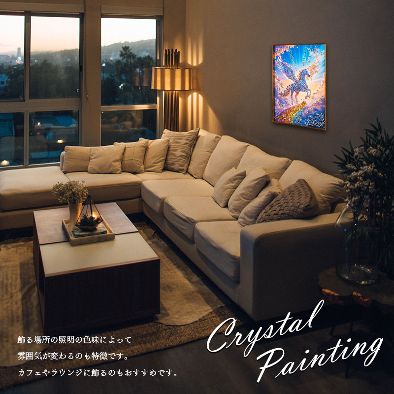 | 特徴 | ・水晶はハンドメイドで飾りつけし、高級感と立体感にこだわりました。 ・太陽光や照明の光を複雑に透過や屈折で光の乱舞を作り出して楽しむことができます。 ・飾る場所の照明の色味によって雰囲気が変わります。 ・上品なブラックカラーのフレームと裏面紐付き。 |