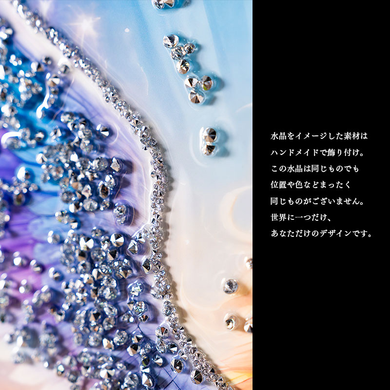 | 注意 | ・ハンドメイドでの貼り付けのため、水晶風パーツの個数・配置に個体差がございます。 ・本商品には重量がございます。壁掛けて取り付け頂く際は必ず、壁の心材がある場所にボルトなどで固定してください。 ・本商品の特性上、輸送中の振動により装飾の一部が取れる場合がございます。予めご了承ください。 |