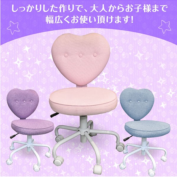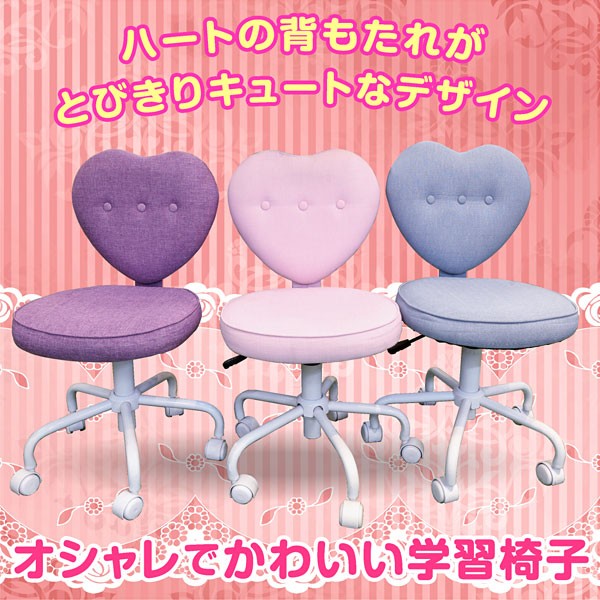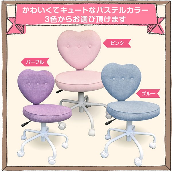 | 製品名: | 学習椅子 ハート型チェア キッズ用 昇降式 回転 キャスター付き 勉強机用 ブルー パープル ピンク |