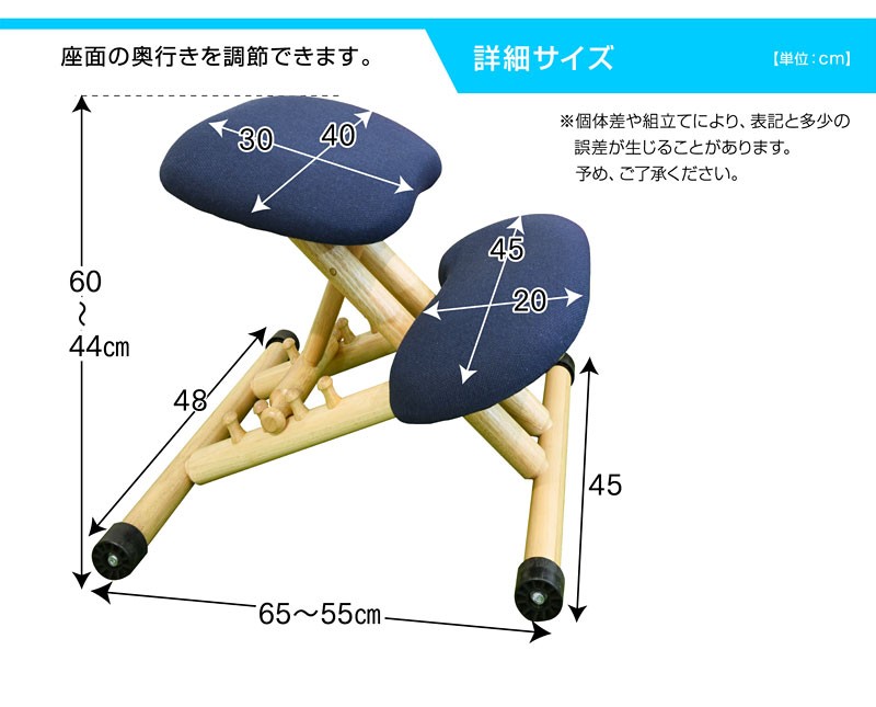 | サイズ | 幅48×奥行55〜65×高さ44〜60(cm) 座面高さ:42〜60(cm) |