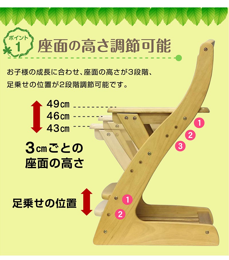 | サイズ | 幅42×奥行45×高さ76(cm) 座面高さ:43〜49(cm) |