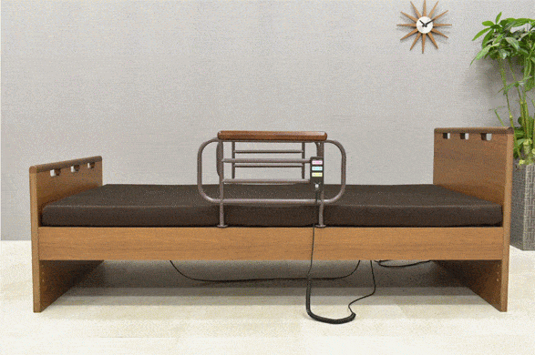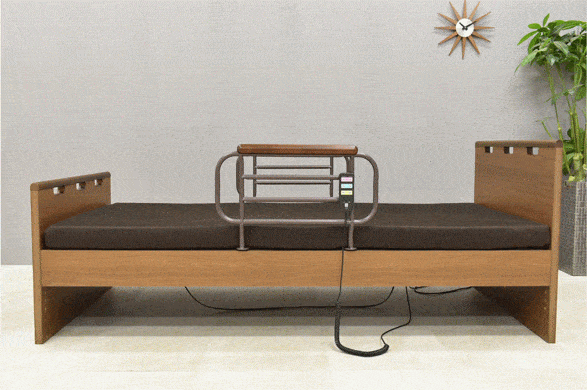 「もみじ」は背上げ・足上げを個別に操作できる2モーターを採用し、読書や食事、就寝姿勢まで細やかに調整可能。コードリモコンで手元操作ができ、立ち座り時の不安を軽減する手すりを2本付属。専用マットレス(日本製)がセットで、届いた日から快適に使えます。床板高さは組立時に6段階で調整でき、乗り降りのしやすさやお部屋の環境に合わせて最適化。フレームは木目調の落ち着いた仕上げで、寝室インテリアに自然に溶け込みます。ベッド本体は幅97×長205×高80cm、マットは幅95×長195×厚み8cm。カラーはライトブラウンとミディアムブラウンをご用意。玄関渡しの配送に対応し、開梱設置サービスも別途手配可能です。毎日の暮らしを快適に支える電動ベッドとして、在宅ケアから日常使いまで幅広く活躍します