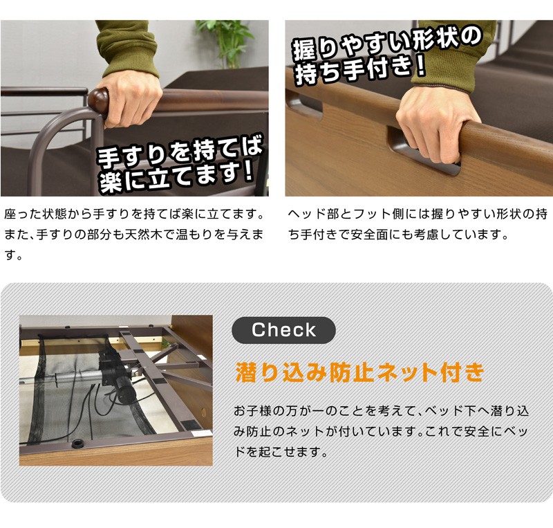 | 製品名: | 電動ベッド 介護ベッド 大人用 リクライニング 2モーター 手すり2本 マットレス付 木製 シングル もみじ |